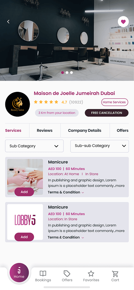 Lobby5 is a home services marketplace that allows users to book essential services at their doorstep or by visiting the merchant’s store. It brings together multiple service providers on a single platform, offering a smooth browsing experience with transparent pricing, instant booking, and real-time updates.